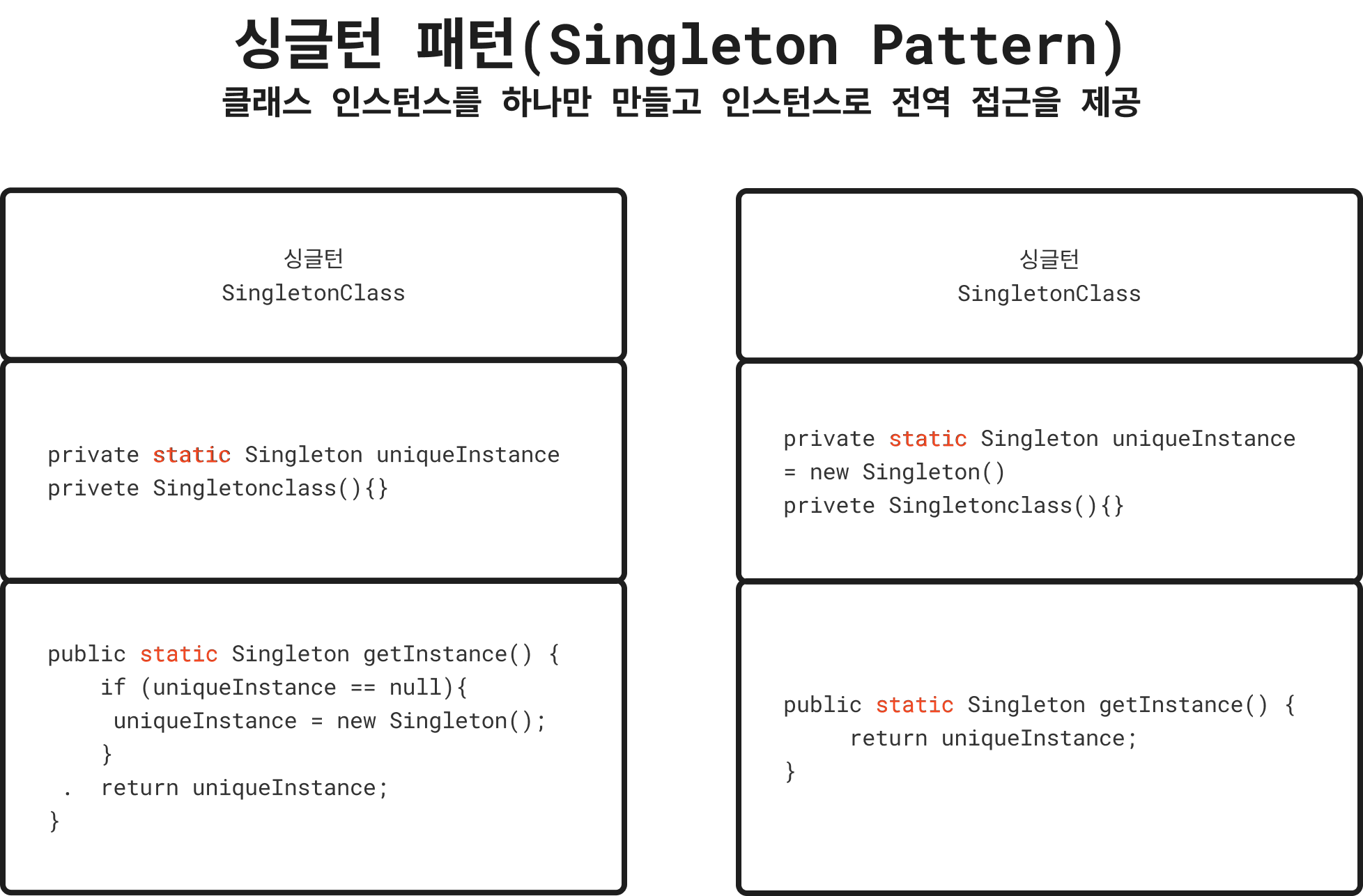 ํด๋์ค ์ธ์คํด์ค๋ฅผ ํ๋๋ง ๋ง๋ค๊ณ , ๊ทธ ์ธ์คํด์ค๋ก์ ์ ์ญ ์ ๊ทผ์ ์ ๊ณตํฉ๋๋ค.